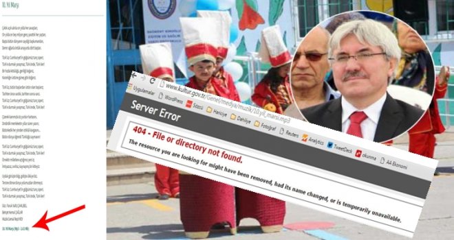 Türkiye Bolu Milli Eğitim Müdürü Yusuf Cengiz'in 10. Yıl Marşı'nı yasaklama kararını konuşurken, Kültür Bakanlığı'nın internet sitesinde marşın dinlenemediği ortaya çıktı. Marşı dinlemek için linke tıklayan kullanıcılar, 404 hatası ile karşılaşıyor.
