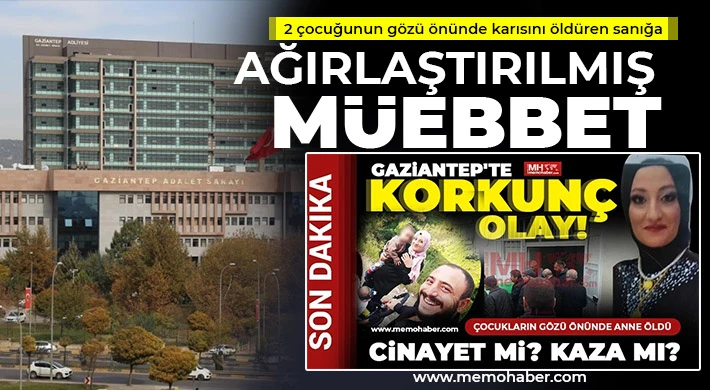 Gaziantep'te 2 çocuğunun gözü önünde eşini öldürmekten yargılanan şahıs, ağırlaştırılmış müebbet hapis cezasına çarptırıldı.