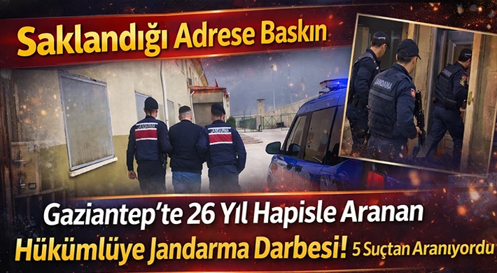 Gaziantep İl Jandarma Komutanlığı tarafından gerçekleştirilen operasyonla, 5 ayrı suçtan 26 yıl kesinleşmiş hapis cezası bulunan firari hükümlü yakalandı.