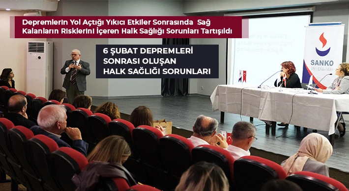 Üç oturumda gerçekleştirilen toplantının birinci oturumunda SANKO Üniversitesi Tıp Fakültesi Halk Sağlığı Anabilim Dalı Öğr. Üyesi Prof. Dr. Muzaffer Eskiocak “Deprem ve Sağlığın Belirleyicileri”, Hatay Mustafa Kemal Üniversitesi Tıp Fakültesi Halk Sağlığı Anabilim Dalı Başkanı Prof. Dr. Tacettin İnandı “Deprem Sonrası Afetlerde Güvenli ve Yeterli Suya Erişim”, ikinci oturumda SANKO Üniversitesi Tıbbi Mikrobiyoloji Anabilim Dalı Öğr. Üyesi Doç. Dr. Hadiye Demirbakan “Afetler ve Enfeksiyon Etkenleri”, Gaziantep İl Sağlık Müdürlüğü Bulaşıcı Hastalıklar Şube Müdürlüğü Uzm. Dr. Osman Petek “Depremin Gaziantep Genelinde Enfeksiyon Hastalıklarına Etkisi” konulu sunum yaptı.