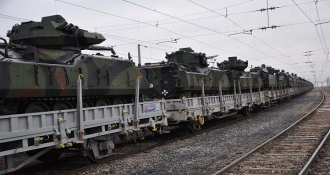 Suriye'de sürdürülen Fırat Kalkanı Harekatı devam ederken, Kocaeli'den sevk edilen çok sayıda Zırhlı Muharebe Aracı ile Zırhlı Personel Taşıyıcı ve askeri personel, demiryolu ile Gaziantep'in İslahiye ilçesine geldi.