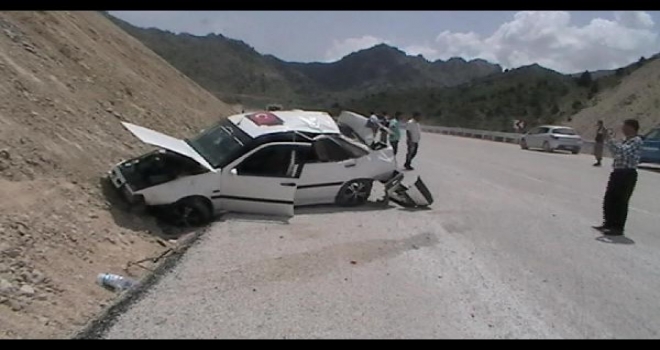 Kaza, öğle saatlerinde Kahramanmaraş-Kayseri karayolunda bulunan Aslanbey tünel girişinde meydana geldi. Kahramanmaraş'taki açıköğretim sınavından Göksun'a dönen 22 yaşındaki Bekir Yapıcı yönetimindeki 19 DT 992 plakalı otomobil, Aslanbey tüneli girişinde mıcırlı yolda kontrolden çıkarak toprak yığınına çarptı. Hurdaya dönen otomobilin sürücüsü Bekir Yapıcı ile yanında bulunan Mahmut Koyuncu ve Tuğrul Doğan yaralandı. Yaralı öğrenciler, ihbar üzerine olay yerine gelen sağlık görevlileri tarafından ambulansla Göksun Devlet Hastanesi'ne götürüldü. Acil serviste tedaviye alınan yaralıların sağlık durumlarının iyi olduğu öğrenildi.
