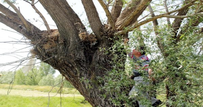 Ahmet DAĞLI/SANDIKLI (Afyonkarahisar), (DHA) - AFYONKARAHİSAR'ın Sandıklı İlçesi'nde söğüt ağacına yuva yapan şahin ve yumurtadan çıkan 4 yavrusu, tarla sahibiyle arkadaşlarının korumasına alındı. Her gün sabah akşam kontrol ettikleri yuvayı başka yırtıcı hayvanlardan korumaya çalışan vatandaşlar, 1 aydır yavruların beslenmesi için yuvaya yiyecek ve içecek bırakıyor.