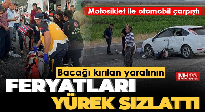 Gaziantep'tin İslahiye ilçesinde motosiklet ile otomobilin karıştığı kazada 2 kişi yaralandı. Kazada bacağı kırılan motosiklet sürücüsü Ömer Faruk T.'nin yerde ağrıdan kıvranması ve defalarca 'ah, bacağım, bacağım kırık' diye bağırması ise yürek sızlattı.