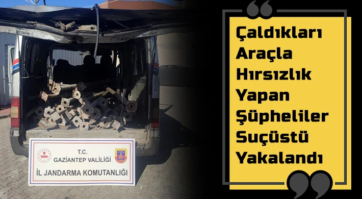 Gaziantep'te çaldıkları araç ile bir inşattan hırsızlık yaptıkları tespit edilen 3 şüpheli jandarma ekiplerince suçüstü yakalandı. Şüpheli şahıslar, sevk edildikleri adli makamlarca tutuklandı.