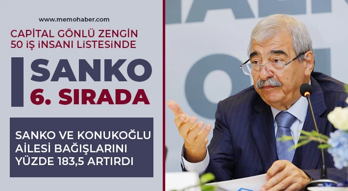 Capital Dergisinde Özlem Aydın Ayvacı’nın 2023 yılı verileri ile hazırladığı“Gönlü Zengin 50 İş İnsanı” araştırmasında 6. sırayı alan SANKO Holding ve Konukoğlu Ailesi’nin, bir milyar 98 milyon 815 bin 554 TL tutarında bağışta bulunduğu belirtildi.