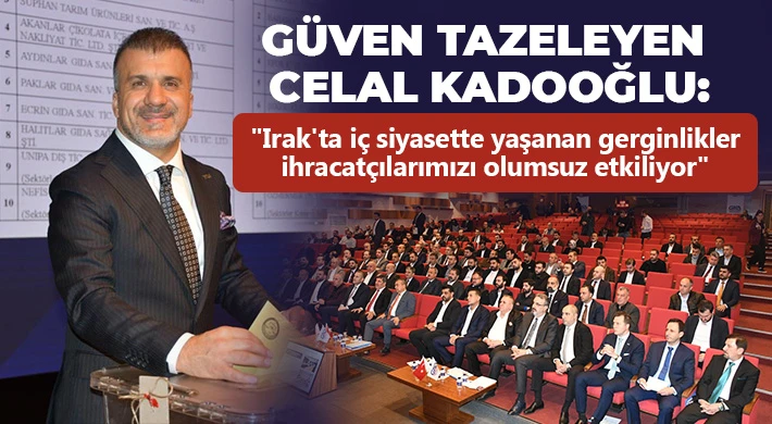 Güneydoğu Anadolu Hububat Bakliyat Yağlı Tohumlar ve Mamulleri İhracatçıları Birliği Başkanı Celal Kadooğlu, tek liste ile girilen seçimli olağan genel kurul sonrası tekrar başkan seçilerek güven tazeledi. Genel kurulda detaylı bir sunum yaparak yoğun bir 4 yıl geçirdiklerini ve yeni dönemde de yoğun şekilde çalışacaklarını belirten Kadooğlu, özellikle Irak'taki iç siyasette yaşanan gerginliklerin ihracatçıları olumsuz etkilediğini vurguladı.