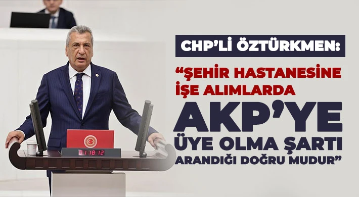 Cumhuriyet Halk Partisi Gaziantep Milletvekili Avukat Hasan Öztürkmen, Gaziantep Şehir Hastanesine işe alımlarda AKP’ye üye olma şartı arandığı yönünde son günlerde kamuoyunda yaygın bir duyum olduğunu, AKP’ye üye olmayanlardan ise üyelik yaptırması istendiği şeklindeki iddiaları gündeme getirdi.