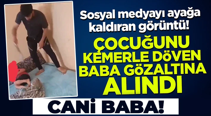 Öte yandan sosyal medyada yayılan görüntüde babanın küçük çocuğa kemerle şiddet uyguladığı görülüyor.