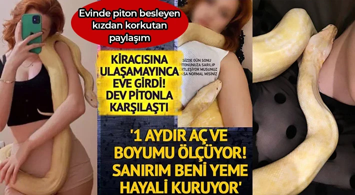 Diğer taraftan, bir sosyal medya kullanıcısı genç kız ise pitonun kendisine ait olduğunu iddia ederek pitonla fotoğrafını paylaşarak kendisine verilmesini istedi. Sosyal medya hesabından paylaşımda bulunan genç kız, “O yılan evcil, neden götürdünüz? Evde yılanı arıyorum” dedi. Genç kızın sayfasında yıla ait çok sayıda görüntü olduğu da dikkatlerden kaçmadı. Bir görüntüsünün üzerinde yazan “1 aydır aç ve boynumu ölçüyor sanırım beni yeme hayali kuruyor” cümlesi ise korkuttu. Genç kızın yılanı yatak odasında beslediğine dair görüntüler olduğu da görüldü.