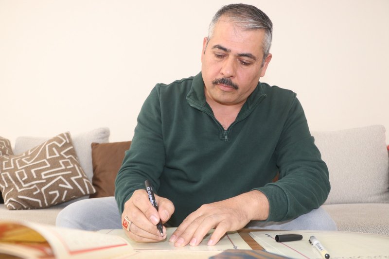 Gaziantep’te televizyonda izlediği bir belgeselden yola çıkaran hat sanatı öğrenen 47 yaşındaki fabrika işçisi Kur’an-ı Kerim’i 1 yılda el yazısıyla yazdı.