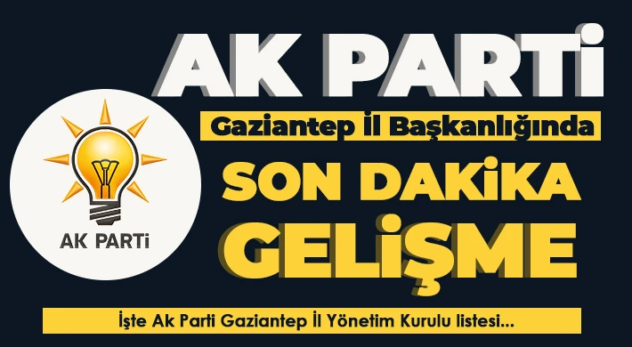 AK Parti Gaziantep il başkanlığında taşlar yerinden oynadı. Son Dakika olarak yönetim kurulu listesi açıklandı.