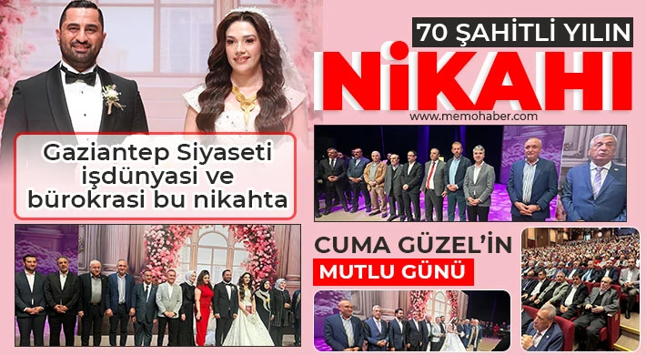 Şahinbey Belediye Başkan Vekili Cuma Güzel'in oğlu Hasan Celal Güzel, Bakır ailesinin kızları Elif Nur ile 70 şahitli nikah töreniyle dünya evine girdi.