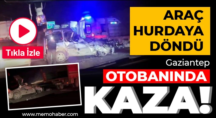 Gaziantep-Şanlıurfa otoyolunda meydana gelen kazada, kamyona arkadan çarpan otomobil hurdaya döndü.