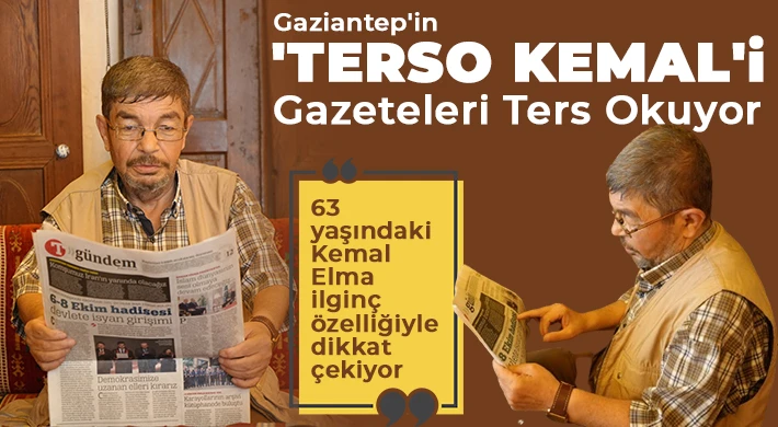 Gaziantep'te yaşayan ve "Terso Kemal" olarak tanınan Kemal Elma, kelimeleri hızlı ve hatasız bir şekilde tersten okuma becerisiyle görenleri hayrete düşürüyor. Bu özelliğiyle kentte tanınan bir isim olmaya başlayan Terso Kemal, yeteneğini bir adım öteye taşıyarak, gazeteleri de tersten okumaya başladı. Bu sıra dışı beceri, onun hikayesini daha da ilgi çekici hale getirdi. Vatandaşlar, onun bu becerisini hem hayretle hem de takdirle karşılıyor.