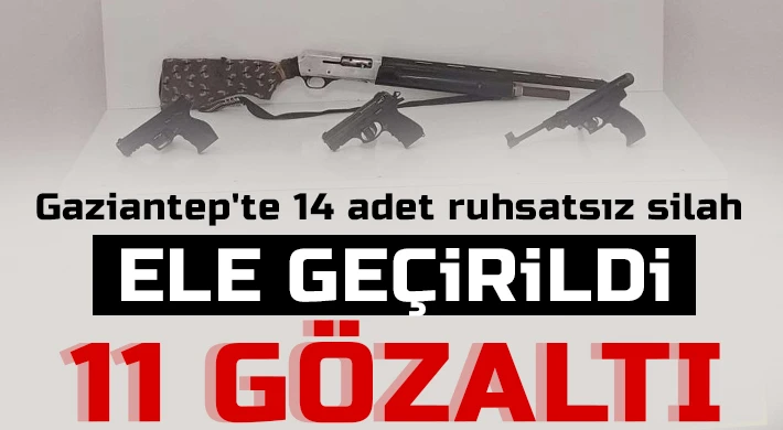 Gaziantep'te silah kaçakçılığına yönelik operasyonda 14 adet ruhsatsız silah ele geçirilirken 11 şüpheli hakkında yasal işlem başlatıldı.