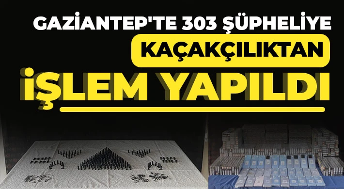 Gaziantep'te Aralık ayında yapılan kaçakçılık operasyonlarında çok sayıda kaçak malzeme ele geçirilirken 303 şüpheli şahıs hakkında yasal işlem yapıldı.