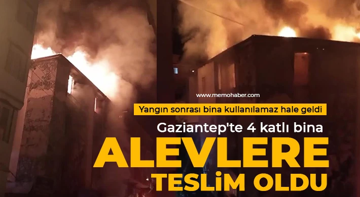 Gaziantep'te 4 katlı boş bir binada çıkan yangın itfaiye ekipleri tarafından söndürüldü. Yangın sonrası bina kullanılamaz hale geldi.
