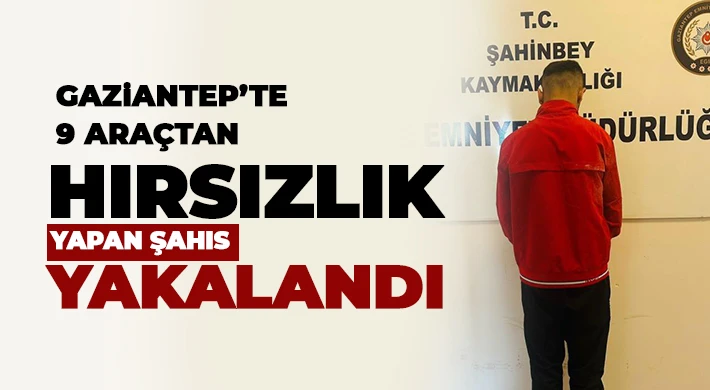 Gaziantep’te polis ekipleri tarafından farklı tarihlerde 9 araçtan hırsızlık yapan şahıs suçüstü yakalandı.