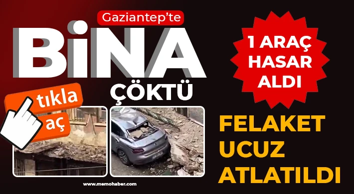 Gaziantep’te bir binanın kısmen çökmesi sonucu sokakta park halindeki araç ağır hasar aldı.