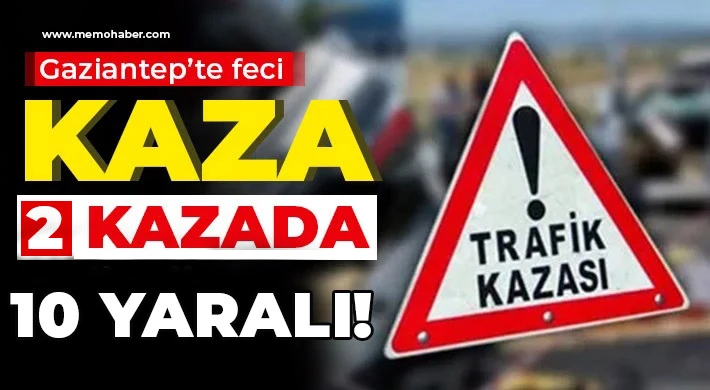 Gaziantep'te meydana gelen 2 ayrı trafik kazasında 10 kişi yaralandı.