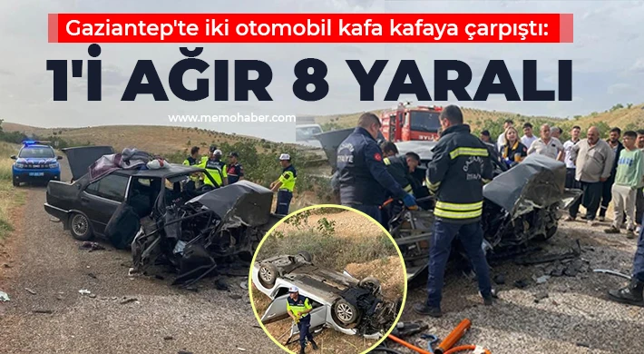 Gaziantep'in Nizip ilçesinde iki otomobilin kafa kafaya çarpışması sonucu 1'i ağır 8 kişi yaralandı.