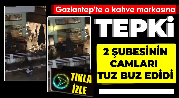Gaziantep'te İsrail'e tepki için kahve zincirinin 2 şubesine taş, sopa ve sandalyeli saldırı yapılarak tepki gösterildi.