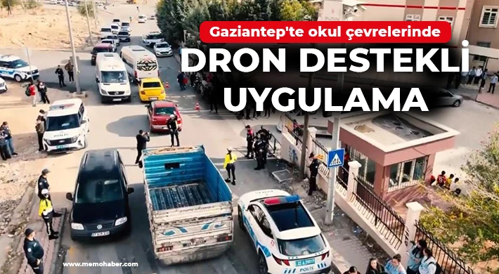 Gaziantep'te polis ekiplerince okul çevrelerinde dron destekli huzur ve güven uygulaması yapıldı.