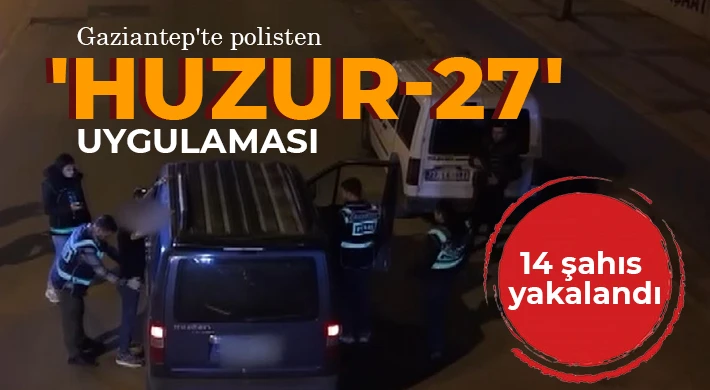 Gaziantep Emniyet Müdürlüğü ekipleri, kent merkezinde pek çok noktada 'Huzur-27' uygulaması yapıldı. Çok sayıda polis ekibinin katıldığı uygulamada, 2 bin 793 şahıs ile bin 70 araç sorgulanarak çeşitli suçlardan aranan 14 şahıs yakalandı. Yapılan aramalarda ise bir miktar uyuşturucu madde ele geçirildi.