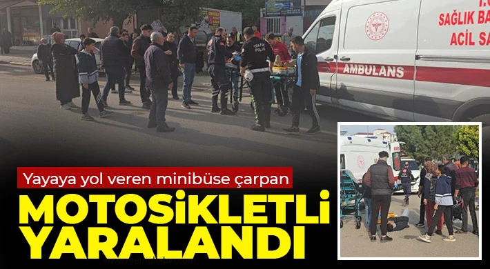 Gaziantep'in İslahiye ilçesinde yayaya yol vermek için duran minibüse arkadan çarpan motosiklet sürücüsü yaralandı.