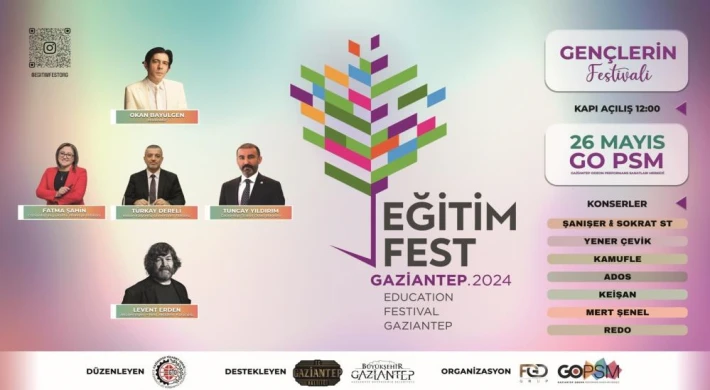 GTO organizasyonunda; Gaziantep Valiliği, Gaziantep Büyükşehir Belediyesi ve İl Milli Eğitim Müdürlüğünün destekleriyle düzenlenecek Gaziantep Eğitim Fest 2024, Gaziantep’in eğitim seviyesini belirlemek ve daha iyi yerlere getirmek, öğrenciler ile eğitim kurumlarını buluşturarak tercih seçeneklerini arttırmak ve doğru yönlendirmek amacıyla 26 Mayıs 2024’te GO Psm’de düzenlenecek.