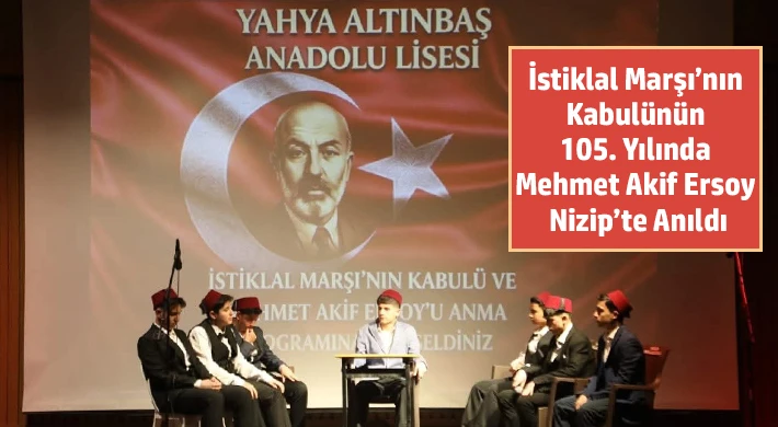 12 Mart 1921 tarihinde Türkiye Büyük Millet Meclisi’nde yapılan oylama sonucunda, Mehmet Akif Ersoy’un kaleme aldığı İstiklal Marşı, Türk milletinin millî marşı olarak kabul edilmiştir. Bağımsızlık mücadelemizin en anlamlı sembollerinden biri olan İstiklal Marşı’nın kabulünün yıl dönümü, yurt genelinde olduğu gibi Nizip’te de düzenlenen programla anıldı.