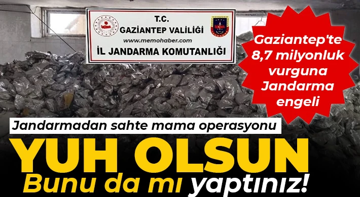 Gaziantep İl Jandarma Komutanlığınca, kaçakçılıkla mücadeleye yönelik Cumhuriyet Başsavcılığı koordinesinde yürütülen titiz planlama, takip ve istihbari çalışmalar sonucu; Şehitkâmil ilçesinde E.B. isimli şahsa ait depoda merdiven altı sahte bebek maması üretiminin yapıldığı ve piyasaya sürülmeye hazır olduğunun tespit edilmesi sonucu şahsa ait depoda yapılan arama neticesinde piyasa değeri yaklaşık 8 Milyon 700 bin TL olan;