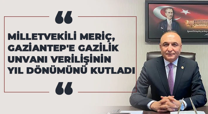 CHP Gaziantep Milletvekili ve İçişleri Komisyonu Üyesi Melih Meriç, Gaziantep’e Gazilik Ünvanı Verilişinin 103. Yıl Dönümü münasebetiyle bir mesaj yayımladı.