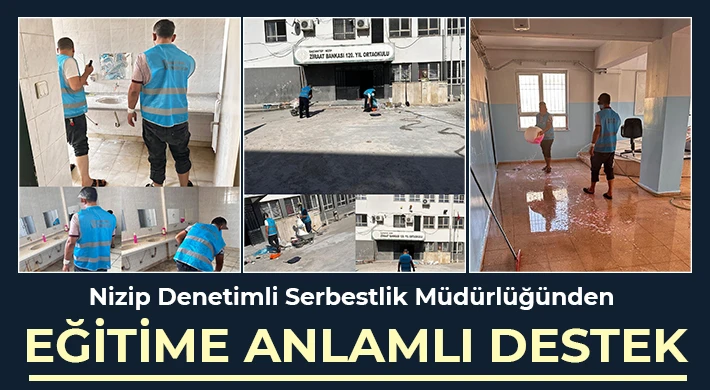 Nizip Denetimli Serbestlik Müdürlüğü, toplum yararına çalışmalar kapsamında önemli bir projeye imza attı. Okulların yaz tatilinde olduğu dönemde, kamu yararına ücretsiz çalışma yükümlülüğü bulunan yükümlüler tarafından Ziraat Bankası 120. Yıl Ortaokulu’nda temizlik, çevre düzenlemesi, bakım ve onarım çalışmaları gerçekleştirildi.