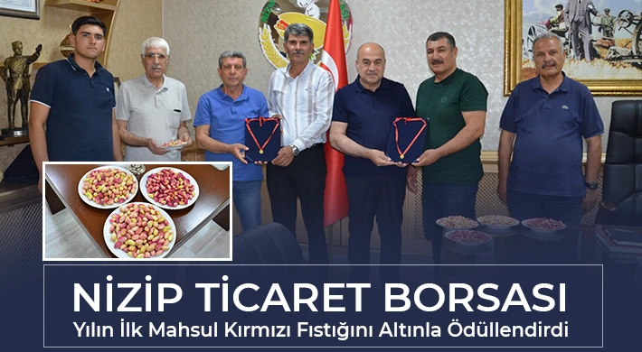 Yeni yılın ilk mahsulü olan bölgemizde erkenci ismi ile tabir edilen kırmızı antep fıstığını üreten çiftçilerimiz Abdurrahman Açıkgöz ve Mehmet Ali Yıldırım Nizip Ticaret Borsası tarafından yarım altınla ödüllendirildi.