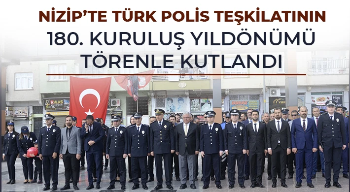 Türk Polis Teşkilatının 180. kuruluş yıldönümü, Nizip'te düzenlenen anlamlı törenlerle kutlandı. Nizip Kültür Parkı’nda bulunan Atatürk Büstü önünde gerçekleştirilen ilk törende, İlçe Emniyet Müdürü Fazlım Demir tarafından çelenk sunumu yapıldı. Saygı duruşunun ardından İstiklal Marşı hep bir ağızdan okundu.