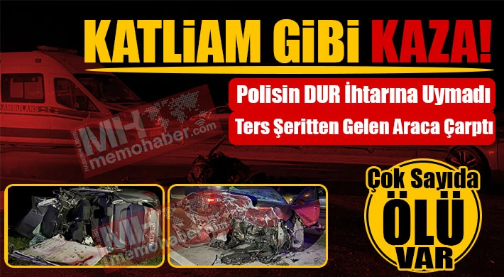 Çanakkale'de iddiaya göre polisin dur ihtarına uymayarak ters yöne giren otomobil, karşı yoldan gelen otomobile çarptığı kazada 5 kişi hayatını kaybetti. 1 kişi yaralandı.