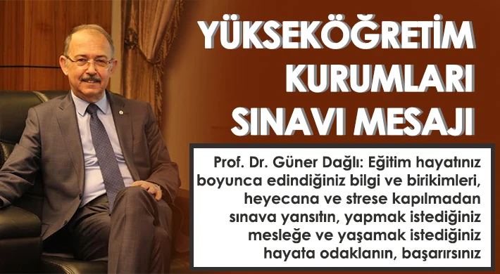 Prof. Dr. Dağlı, “Eğitim hayatınız boyunca edindiğiniz bilgi ve birikimleri, heyecana ve strese kapılmadan sınava yansıtın, yapmak istediğiniz mesleğe ve yaşamak istediğiniz hayata odaklanın. Sınav sonucunun hayat yolculuğunuzda güzel kapılar aralamasını temenni ederim” ifadelerini kullandı.