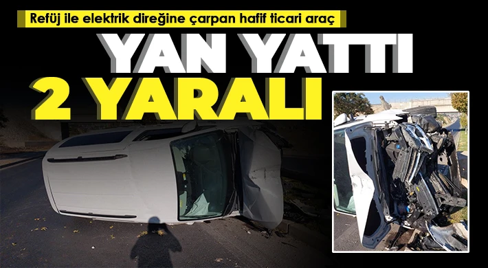 Gaziantep'in Nizip ilçesinde sürücüsünün direksiyon hakimiyetini kaybettiği hafif ticari araç, savrulduktan sonra refüje ve elektrik direğine çarparak yan yattı. Aracın hurda haline geldiği kazada 2 kişi yaralandı.
