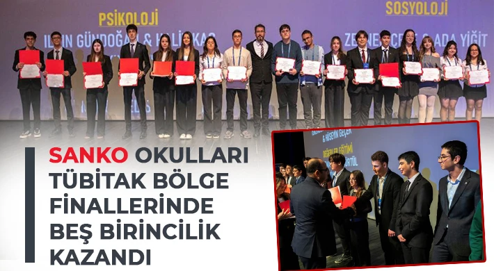 SANKO Okulları öğrencileri, Gaziantep’te düzenlenen 57. TÜBİTAK Lise Öğrencileri Araştırma Projeleri Yarışması Bölge Finalleri'nde beş birincilik, üç ikincilik ve iki üçüncülük kazanarak büyük başarıya imza attı.