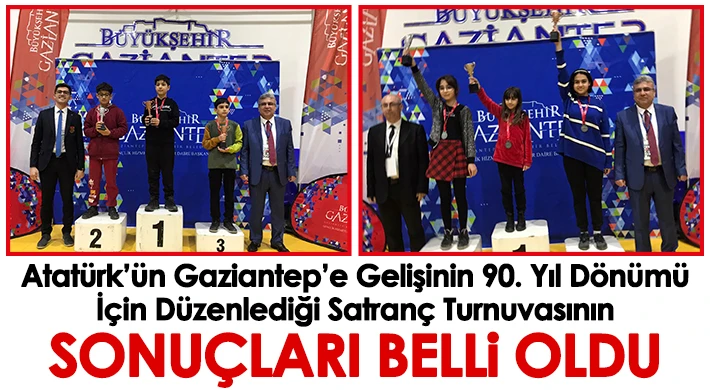 Gaziantep Büyükşehir Belediyesi tarafından 26 Ocak Atatürk’ün Gaziantep’e gelişinin 90’ncı yıl dönümü dolayısıyla düzenlenen satranç turnuvasının kazananları belli oldu.