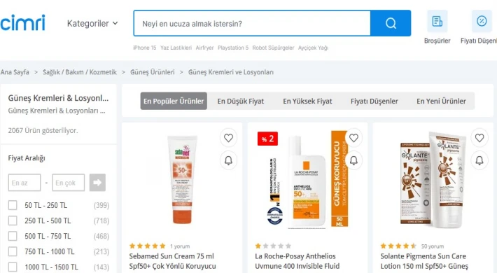 Farklı kullanım alanlarına göre tercih edilen güneş kremi markaları kişisel tercihlere göre farklılık gösterir. Cildi besleyerek kırışıklık ve leke oluşumunu önleyen kremler yer alır. Bu amaç ile üretilen Cimri sitesinde yer alan güneş kremleri güneşe çıkmadan önce sürülmelidir. Bitki özlerinden yapılan yağsız özellikteki kremler, cilt hücrelerini yenileyerek onarır. Düzenli kullanımda cildiniz daha canlı ve parlak olmasını sağlayan güneş kremi nasıl kullanılır sorusu merak konusudur. Bu sorunun cevabı oldukça basit ve pratiktir. Temiz ve kuru cilt üzerine ince bir tabaka şeklinde süreceğiniz krem, sizi gün boyu güneşin zararlı etkilerinden korumaktadır. Yüz bölgesi için günlük kullanılan kremlerin dışında yazın güneşlenirken vücut güneş kremi tercih edilerek her anlamda etkili bir koruma sağlamaktadır. Yüzünüzdeki kusurları örterek daha pürüzsüz bir görünüm oluşturan kapatıcılı güneş kremi, cildi besleyerek daha canlı bir görünüme kavuşturulur. Yaz kış fark etmeden her mevsimde sürülebilen renkli güneş kremi hem kapatıcı hemde koruma özelliği sunar. Parlayan ciltleri daha normal görünüme kavuşturan güneş kremi çeşitleri cilt tonunun eşitlenmesini de sağlamaktadır.