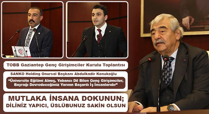 Konukoğlu, Gaziantep Ticaret Odası (GTO) Meclis Salonunda düzenlenen TOBB Gaziantep Genç Girişimciler Kurulu değerlendirme toplantısına katılarak, tecrübe paylaşımı yaptı.