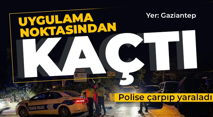 Gaziantep'te uygulama noktasında durdurulmak istenen motosikletli şüpheli bir polis memuruna çarpıp yaraladıktan sonra olay yerinden kaçtı.