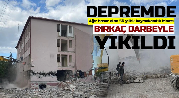 Asrın felaketinde ağır hasar alan Gaziantep'in Yavuzeli ilçesindeki 56 yıllık kaymakamlık binası, kontrollü bir şekilde yıkıldı. Yarım asırlık binanın iş makinesinin birkaç darbesiyle yerle bir olması ise dikkat çekti.