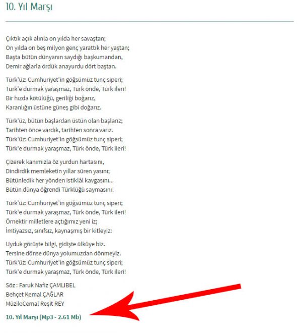 Özetle Kültür Bakanlığı’nın internet sitesine girip 10. Yıl Marşı’nı dinlemek isteyenler için bir bölüm var. Fakat bu bölüme tıklandığı zaman marş dinlenemiyor.