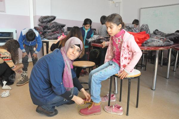 İzmir 112 Komuta Kontrol Merkezi'nde görevli Acil Tıp Teknisyeni Müjde Dindar, kendisi gibi 112 çalışanlarının katıldığı kampanyayla topladığı giysi ve ayakkabıları, Gaziantep'te ihtiyaç sahibi 112 öğrenciye dağıttı.