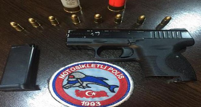 Motosikletli polisler, Vatan Mahallesi'nde durumundan şüphelendikleri H.Ç.'nin üst aramasında ruhsatsız tabanca, 8 kurşun ve 2 fişek ele geçirdi. Yapılan kimlik sorgulamasında H.Ç.'nin 'hırsızlık' ve 'kasten adam öldürme' gibi 12 suçtan arandığı belirlendi. Tabanca ve mühimmata el koyan polis, H.Ç.'yi gözaltına aldı.