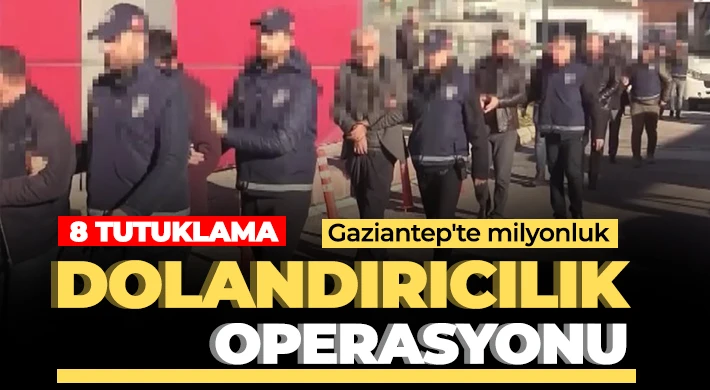 Gaziantep İl Emniyet Müdürlüğü Asayiş Şube Müdürlüğü ekipleri, Cumhuriyet Başsavcılığı koordinesinde dolandırıcılara yönelik 22 Aralık 2023 tarihinde operasyon düzenledi. Gerçekleştirilen operasyonda ekipler, arazi, daire, araç ve çeşitli gıda maddeleri alım satım işlerinde vatandaşları 8 milyon 350 bin TL dolandırdıkları tespit edilen 8 şüpheliyi yakaladı. Emniyetteki işlemlerinin ardından adliyeye sevk edilen şüpheliler, çıkarıldıkları mahkemece tutuklandı.
